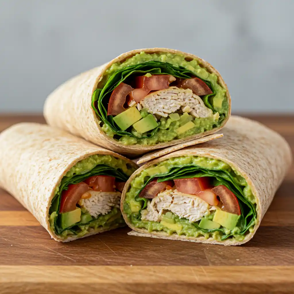 - Good source of fiber (whole wheat tortilla + veggies).