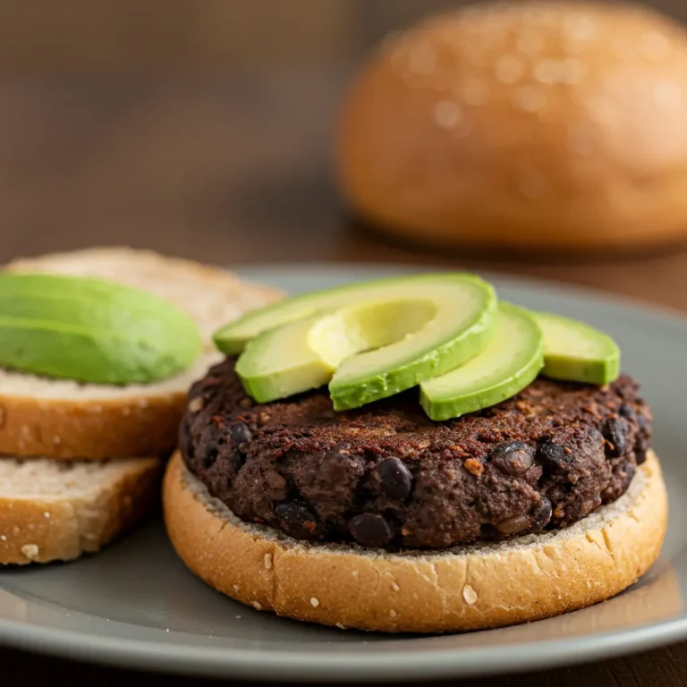 Black Bean Burger with Whole Wheat Bread and Avocado