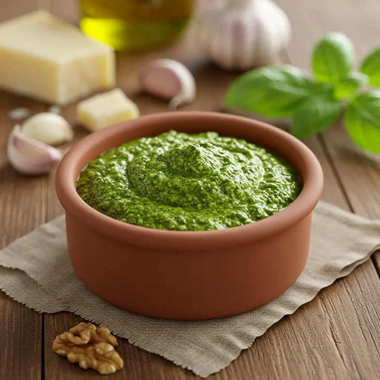 Homemade Pesto Sauce with Walnuts and Extra Virgin Olive Oil